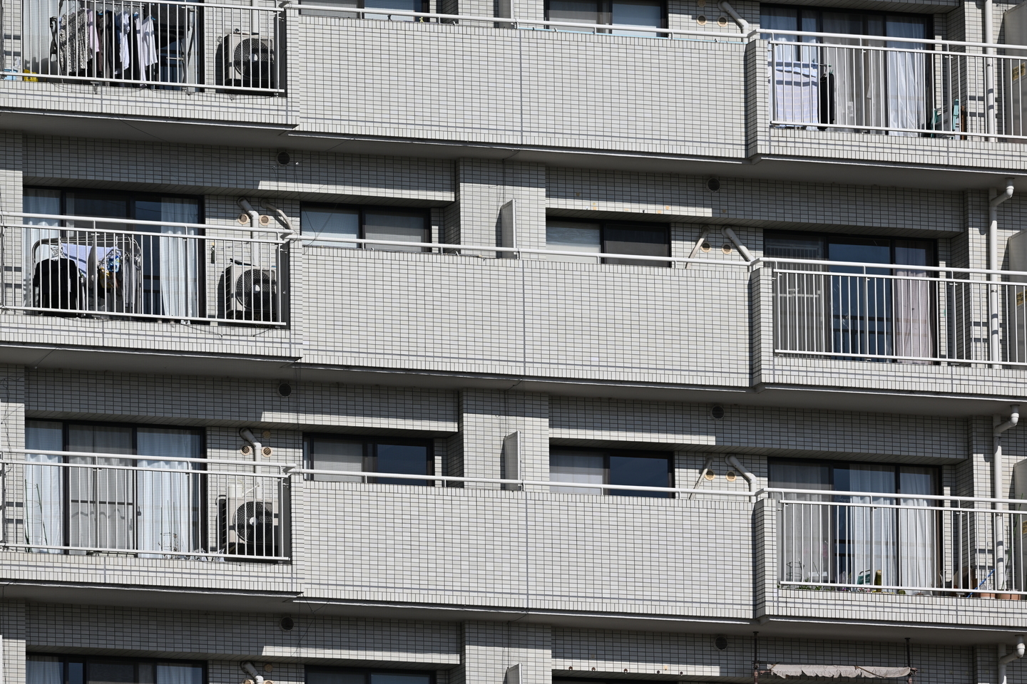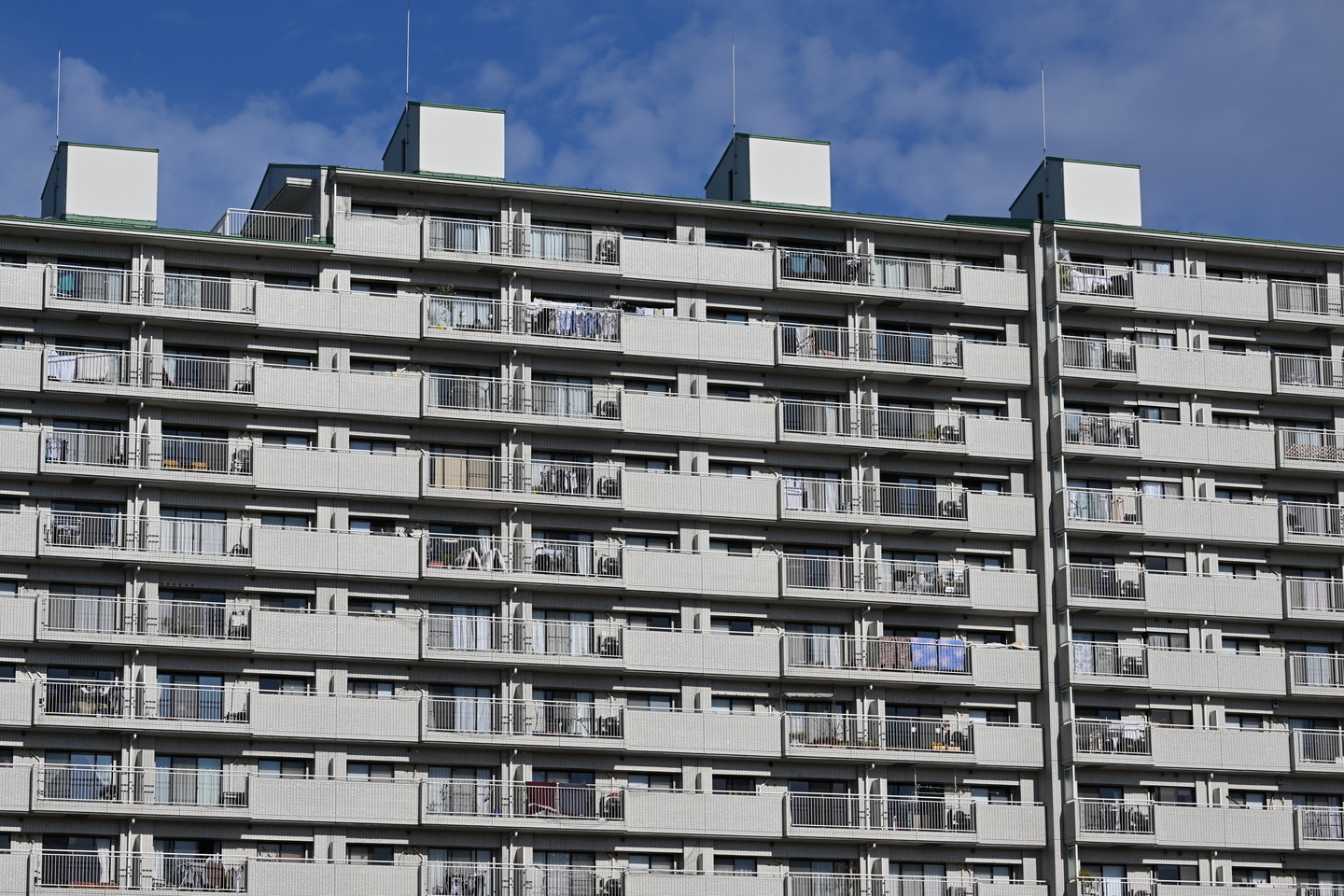 ワイド端100mmでマンションを撮りました。しっかりくっきりと建物の直線とタイルを描き、解像しています。コントラストも豊かでメリハリのある絵になっています。