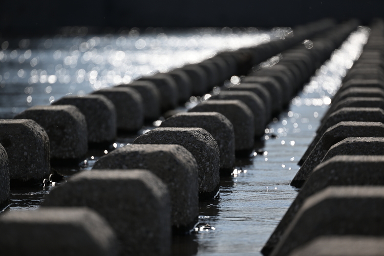 超望遠域では圧縮効果を活かしたり、ボケ感を堪能した撮影が可能です。堰堤のブロックを撮影しましたが、ボケ感がとてもいい雰囲気です。ハイライト部のヌケ感がさすがニコンの「S-Line」レンズだな、という印象ですね。