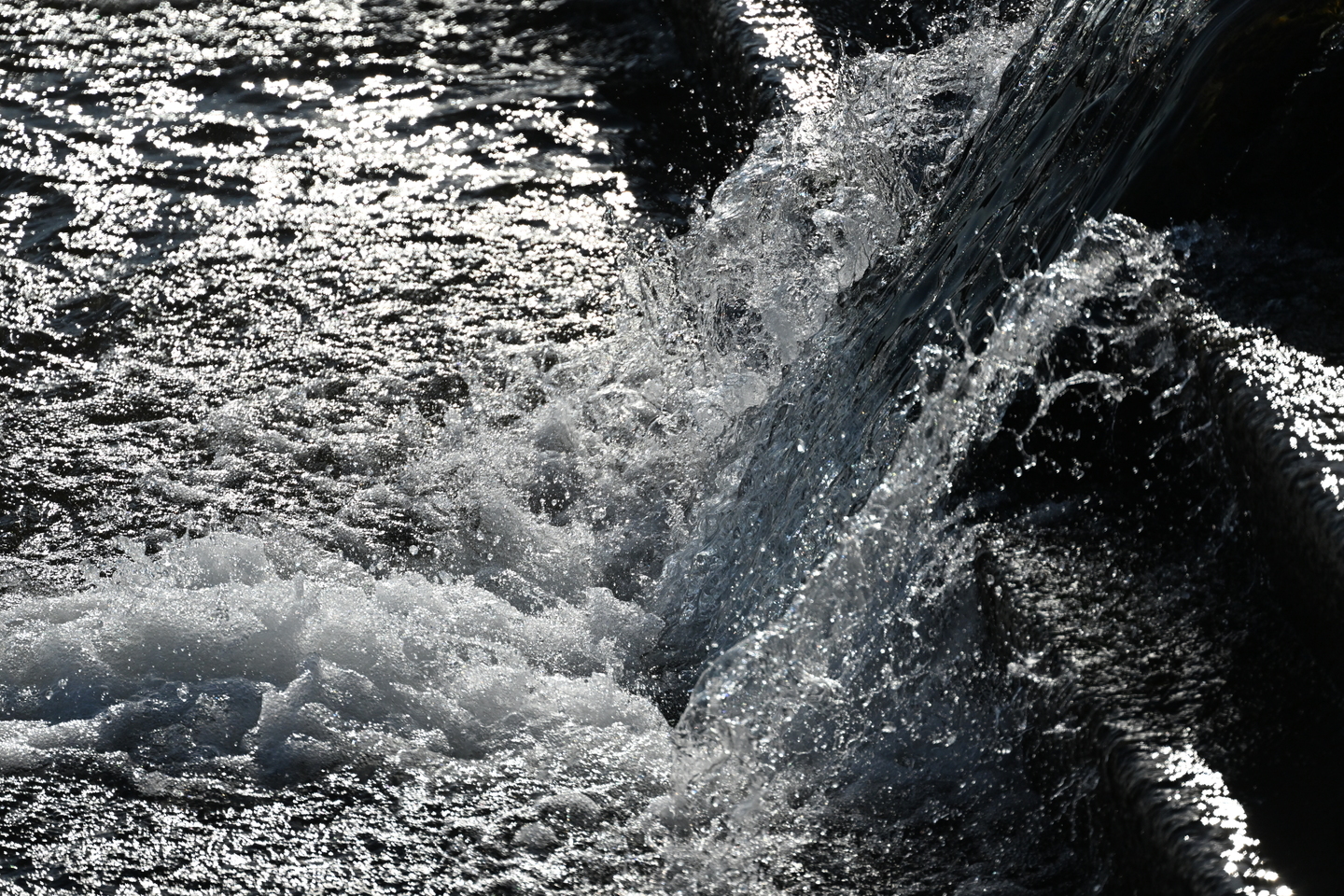 超望遠ズームレンズは楽しいです。カメラに装着してブラブラと歩き、日ごろ気になっていた光景をテレ端で撮ってみると意外な発見があるものです。このカットは堰からほとばしる水を撮ったものですが、肉眼では確認できない遠くの様子を、1/32000秒というシャッタースピードで封じ込めました。何気ないシーンですが美しい1枚となりました。