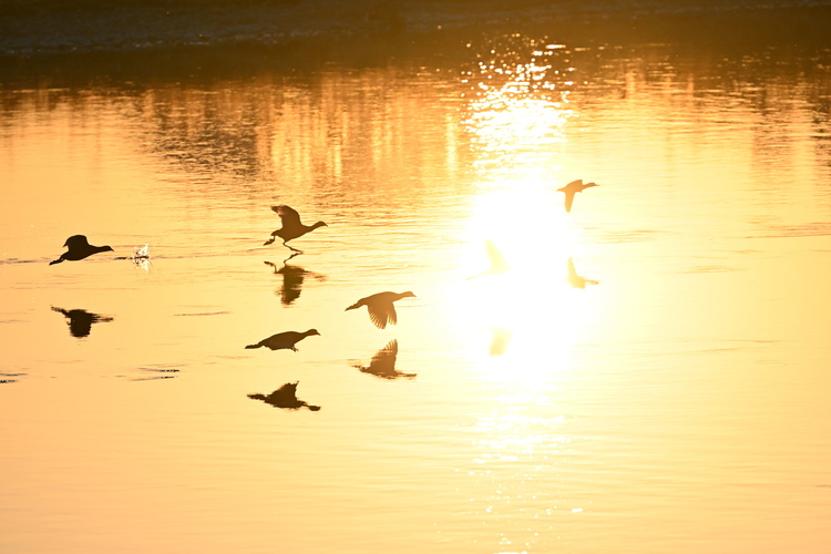 飛翔するオオバンの群れを連写しました。「Z 9」の豊富なオートフォーカスと連写モードは「NIKKOR Z 100-400mm f/4.5-5.6 VR S」での撮影にマッチします。狙ったとおりのシーンを撮ることができました。レンズを振っての撮影も軽量コンパクトなので軽快に行えます。