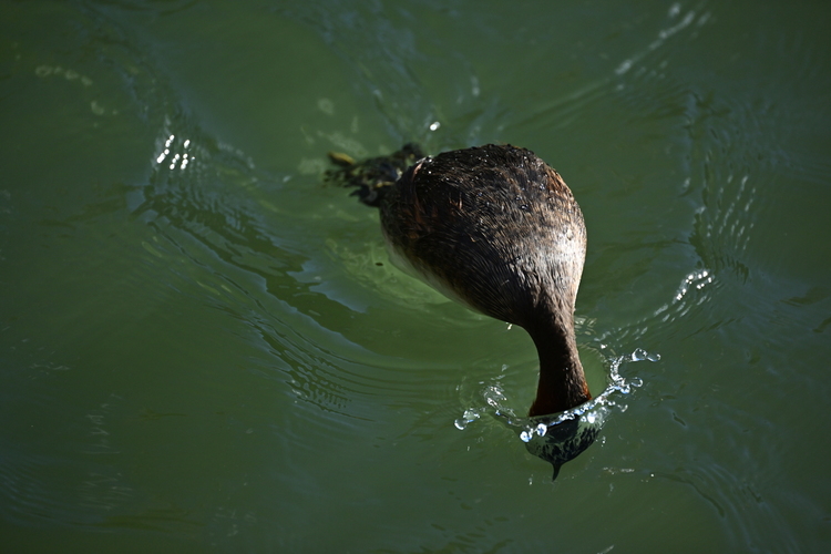 同じ池で泳ぐカイツブリを狙いました。ダイブするな、と思った瞬間に「Z 9」のシャッターを切りましたが、「NIKKOR Z 100-400mm f/4.5-5.6 VR S」は確実にその頭部に合焦して、波紋とともに印象的なカットをキャプチャーしてくれました。羽毛のディテールも驚くほどシャープに解像しています。スゴいですね!