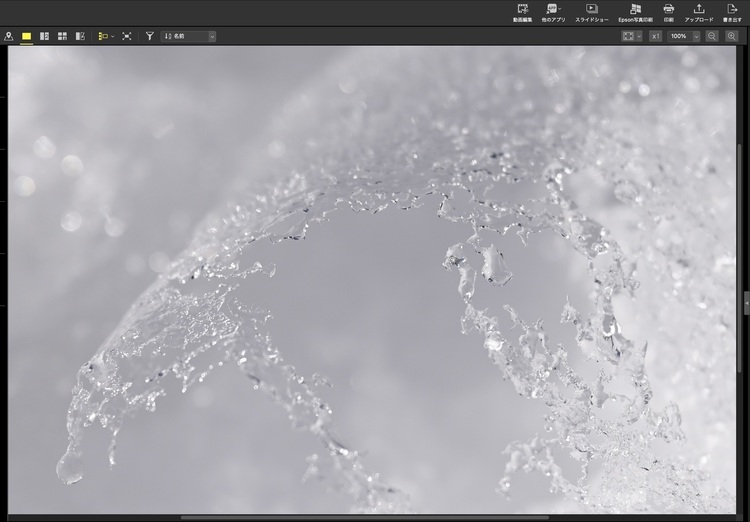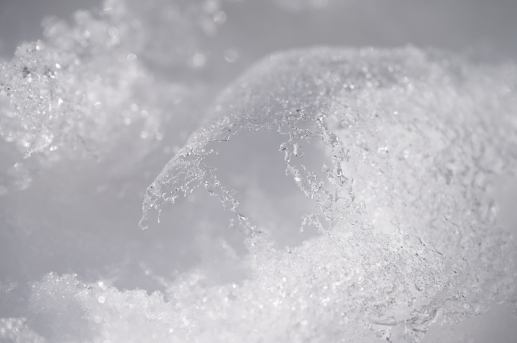 テレ端の120mmでギリギリまで寄って撮影。陽射しに寄って溶けかけ、触れるとすぐに崩れてしまう繊細な氷のドームや、結晶のように連なるさまはファインダー越しに見惚れてしまいました。