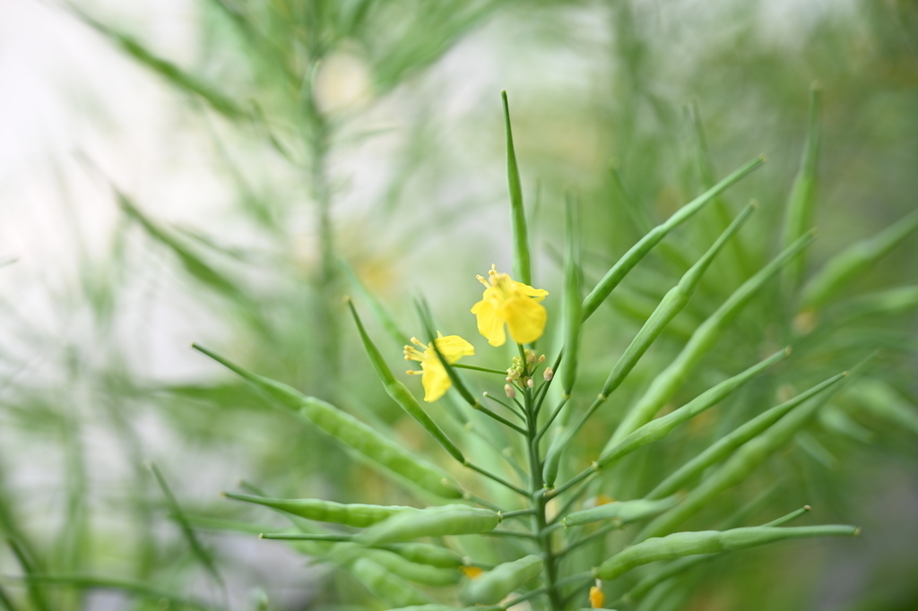 作例は駅の近くで咲いていた花を撮ったものですが、後ろは細くたくさんの葉が生えています。