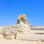 ギザの3大ピラミッドのひとつ、カフラー王のピラミッドは高さ約143mで、頂上部には化粧板が残っているのが特徴です。この化粧板は、本来ならピラミッドの下まで覆っていたのですが、今は剥がれて、積み上げた石がむき出しになっている状態です。
