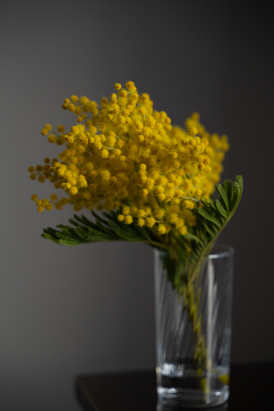 こちらのミモザの作例は、少し暗くなった室内で窓からの自然光のみで撮りました。ニコンのミラーレス機の手ブレ補正のおかげもあって、ブレを気にせずしっかりと写すことができました。72mmという焦点距離のおかげでピント面の花が浮き出て、背景の壁もしっかりとボケているような写りになりました。