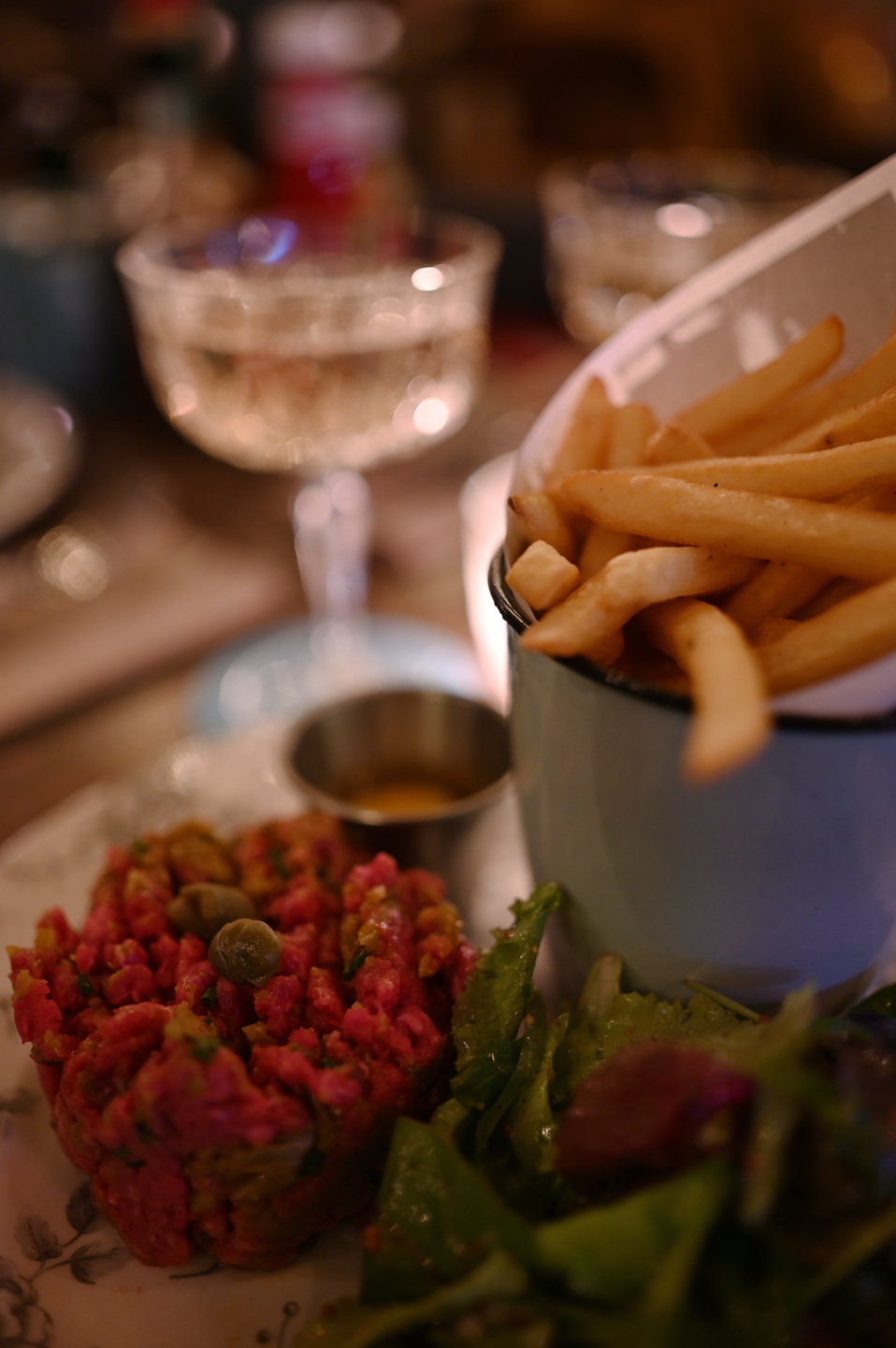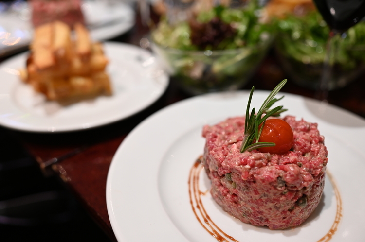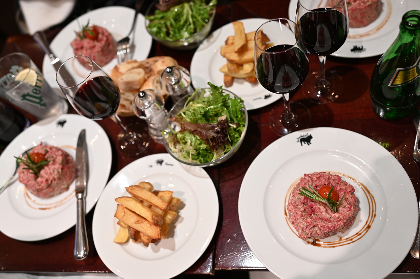 ちなみにこのお料理はフレンチ版ユッケとも言える「ステーキ・タルタル」。生の牛肉を数種類のスパイスとともにいただきます。日本ではもう食べることの叶わないメニューゆえ、ぜひまたフランスへ食べに行きたいものです。