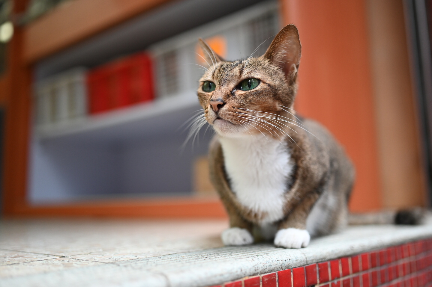 香港で乾物屋さんの店先にいた人懐っこい猫を、最短撮影距離の短さを活かしてぐっと寄って撮ってみました。ピントの合った手前の目には、写り込んだ景色がはっきり見て取れます。その目のガラスのような艶やかさと毛並みの柔らかさを忠実に描写しつつ、なだらかにやわらかいボケへと繋がっていく様子が見事で、猫の額に触れた時の毛の柔らかさと骨格の硬さといった手触りをリアルにイメージさせてくれる仕上がりに猫好きなら悶絶してしまいそうです。