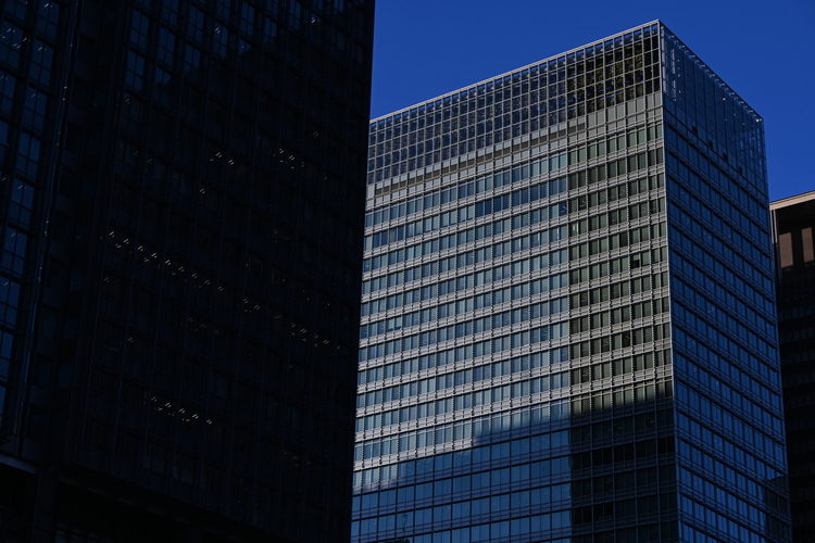 ワイド端でオフィスビルを撮る。力強くそして確実に真っ直ぐなラインをこのレンズは写しとった。ハイライト部からシャドウ部までの連続感や、ウィンドウ内部の様子まで描写がいい。ニコン独自開発の特殊高分散ガラス「SRレンズ」の性能はスゴい