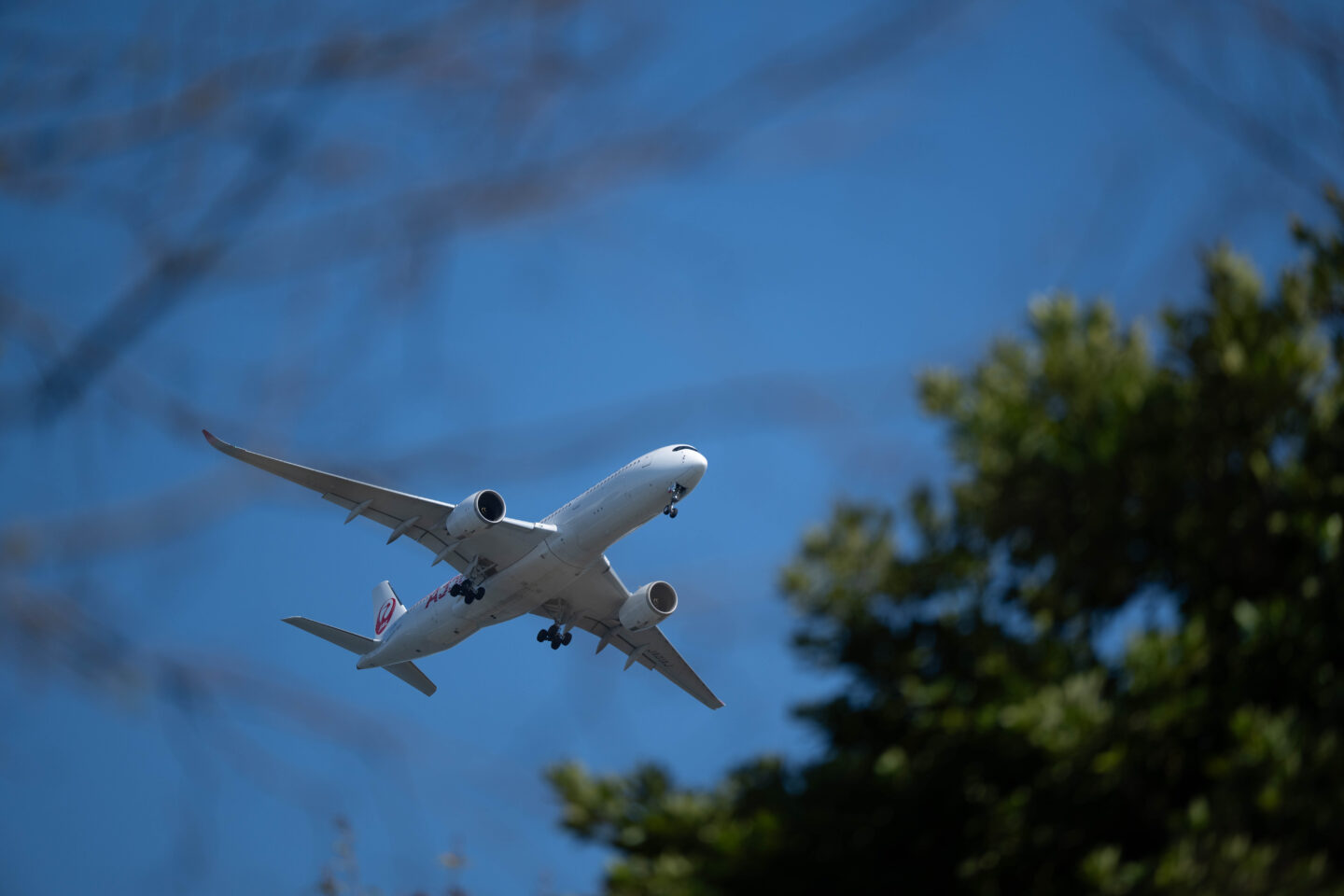 木立の間から着陸してくる飛行機を狙いました。障害物の中から撮影していますが、「NIKKOR Z 70-200mm f/2.8 VR S II」のオートフォーカスはしっかりと認識して迷うことなく合焦しつづけてくれました。