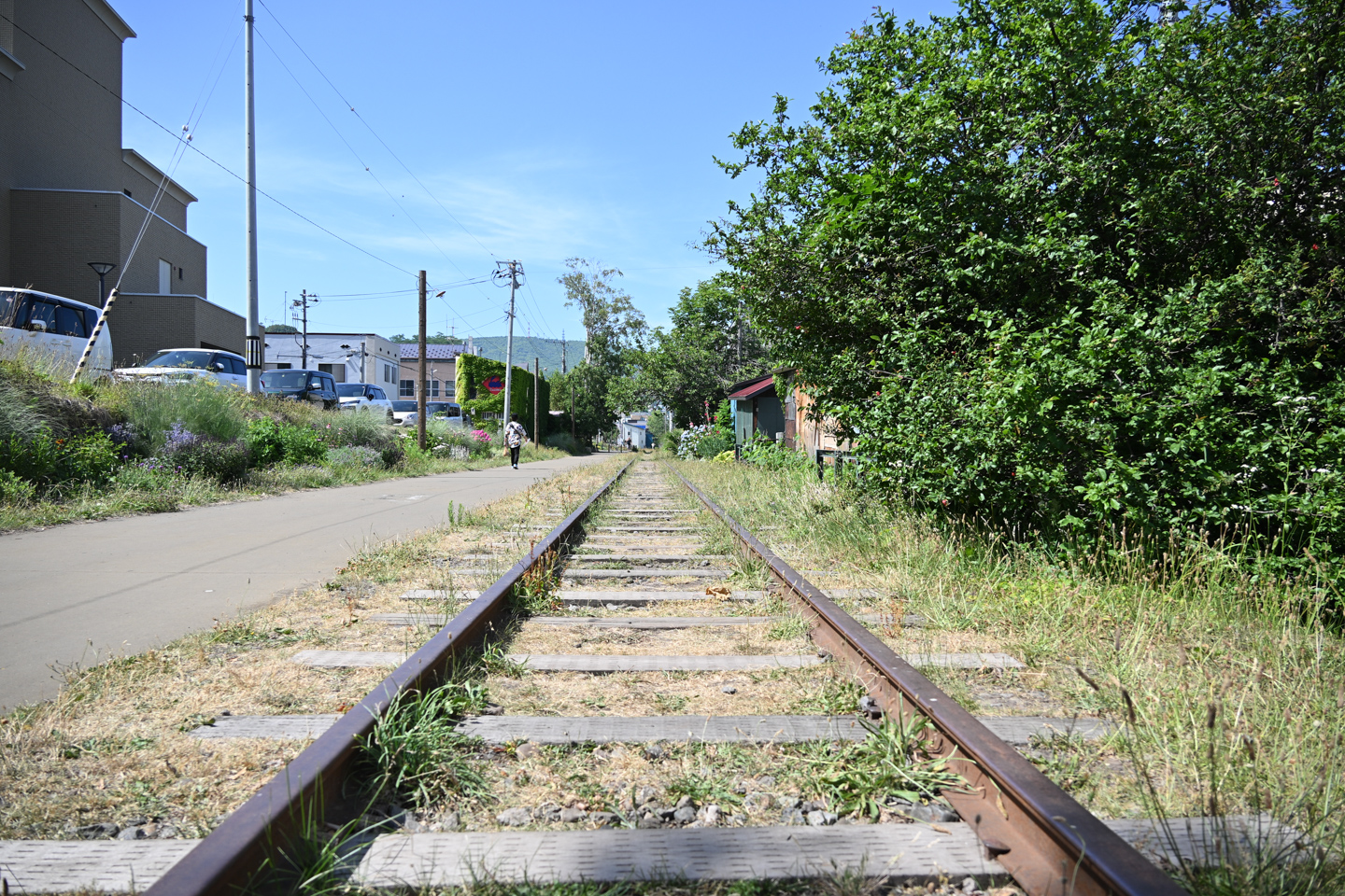 小樽で廃線となった旧手宮線跡を散策中、向こうから手を繋いだ親子が歩いてきました。一番望遠の140mmでピントはできるだけ手前に合わせることで、親子の姿は認識しつつもしっかりボカすことができました。