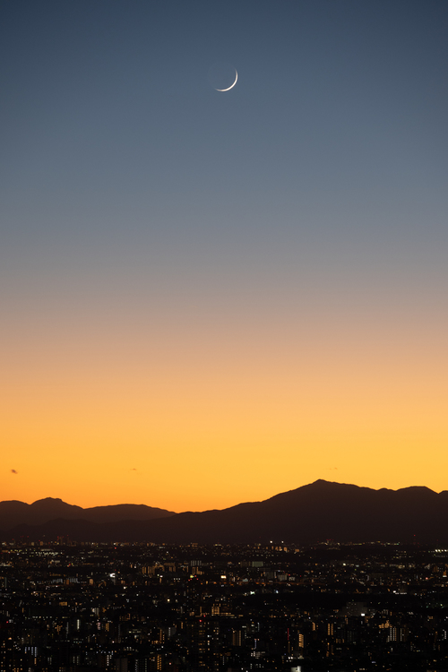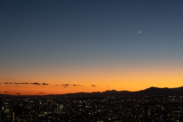 作例に注目して欲しいのですが、今回、月とマジックアワーを撮影しました。陽が沈んだ後の西の空の色のグラデーションが美しい時間帯です。そんな状況下で目の前に広がる景色をそのまま切り取ったように諧調が崩壊することなく、青のグラデーションの色合いを綺麗に写し出してくれました。月の輪郭も綺麗に写してくれています。