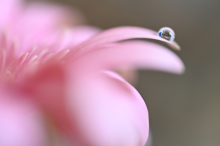 マクロ撮影で撮りたくなるもののひとつが水滴。今回はその中に猫ちゃんを閉じ込めてみました。といっても本物の猫ではなく……(それはさすがに無理でしょう!)猫の写真を天地逆に貼ります。こういった撮影では絞り開放だと被写界深度が浅すぎるため、しっかり絞ることによって雫の中の主役、そして雫の輪郭までをしっかり描写することができました。ただし、絞り過ぎると今度は背景がはっきりしすぎてネタバレ感が出てきてしまいます。今回はF16がギリギリいい塩梅でした。