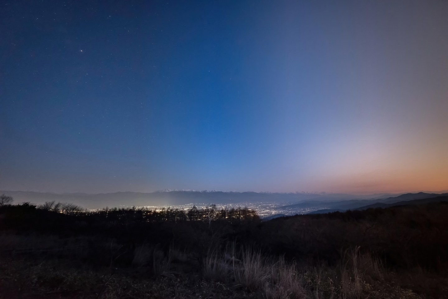 こちらも同じシーケンスのタイムラプス中の1枚より静止画作品に仕上げました。朝焼けが始まる直前、空がブルーモーメントに差し掛かったコマを使ってRAW現像・画像処理を加えました。山の稜線にうっすらと朝焼けの影響と思われる黄色味を帯びたラインが発生していますが、この色は人間の目では確認することができずカメラで写さないと確認できません。