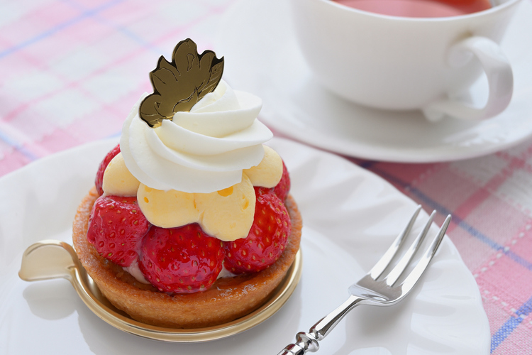 テーブルフォトで、一番楽しいのがスイーツの撮影です。カラフルでとても綺麗なので、写真映えのする魅力的な被写体です。お店で好きなスイーツを買ってきたら、自宅で撮影をしてみましょう。でも、その前に撮影で使うお皿やカトラリー、下に敷くクロスをあらかじめ用意してセッティングしておきましょう。さて、画像を見ると画面の対角線を使って、イチゴのタルトとティーカップを配置しているのが分かると思います。こうすることで、手前にあるイチゴのタルトを強調し、背後にあるティーカップが雰囲気を作り出してくれます。まずは、この並べ方を真似てみて下さい。