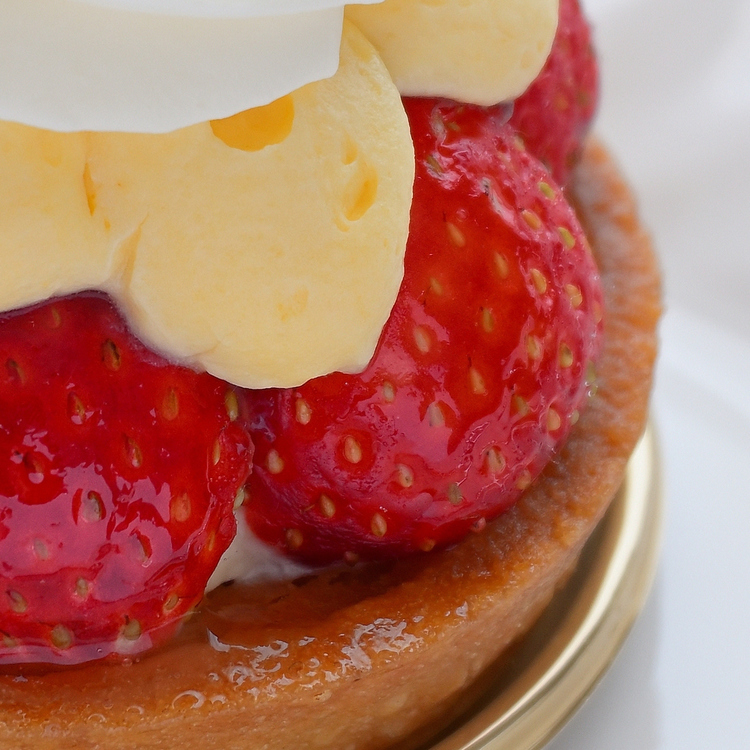 画像を拡大してみると、イチゴの表面に塗られたゼラチンの照りや生クリーム、カスタードクリームのソフトな質感だけでなく、タルトのサクッとした香ばしそうな質感まで表現することができます。