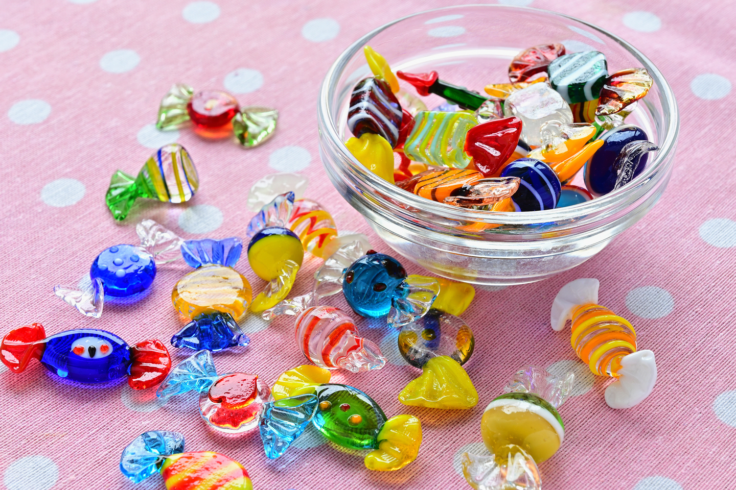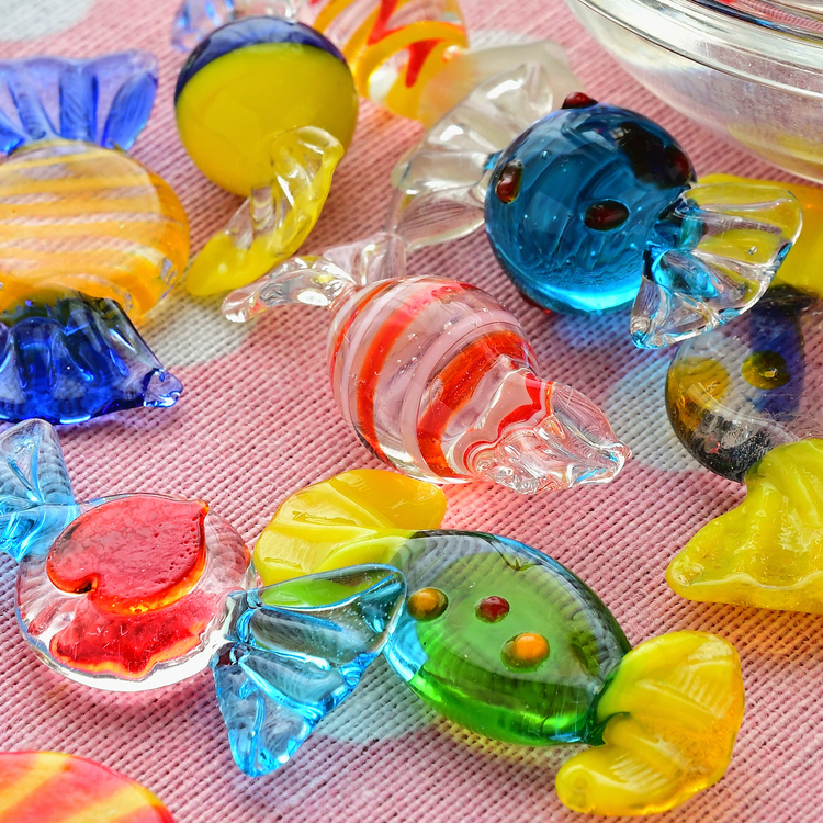 これは、琉球ガラスで作られている小さなキャンディです。ガラス製品は、透明感がポイントになります。トレペを使ってしまうと、コントラストが低くなるためガラスの透明感が出てきません。