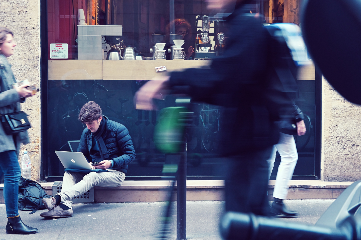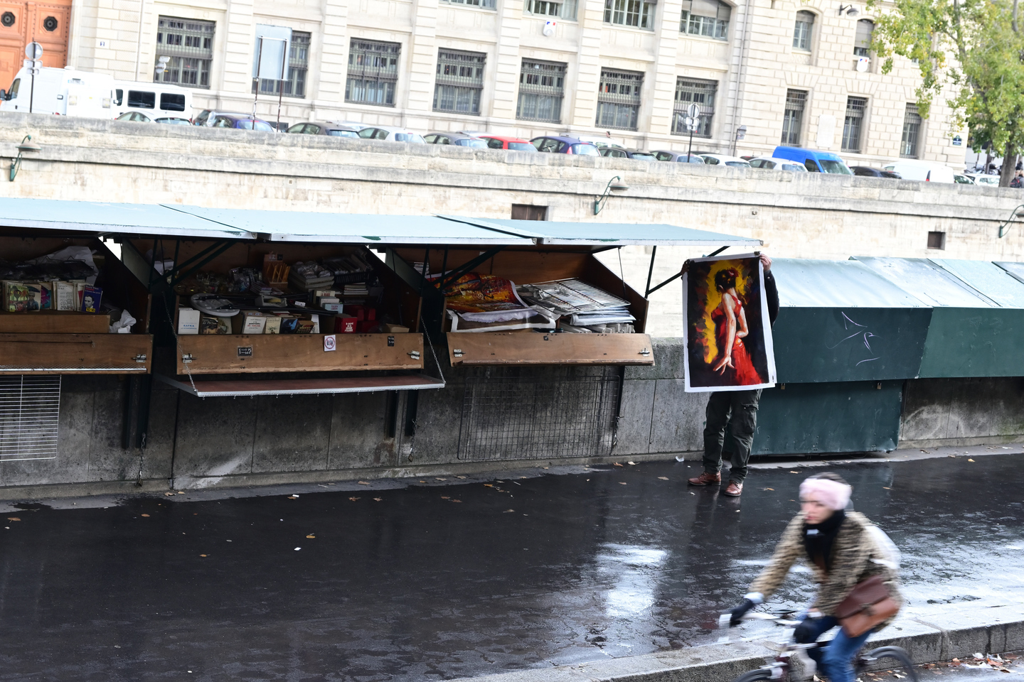 この写真は、動いている2階建てバスに乗りながら撮影しました。セーヌ川沿いで、お店の準備をしているところでしょうか。筆者はいつもAFエリアモードをオートエリアAFにして、顔認識機能を使えるようにしていますが、このような顔がないシーン、もしくは顔以外にピントを合わせたいシーンでは、エリアモードはそのままで、タッチAFを使用して、ピントを合わせたい所をタッチしてピント合わせをして、シャッターボタンを押し込んで撮影しています。
