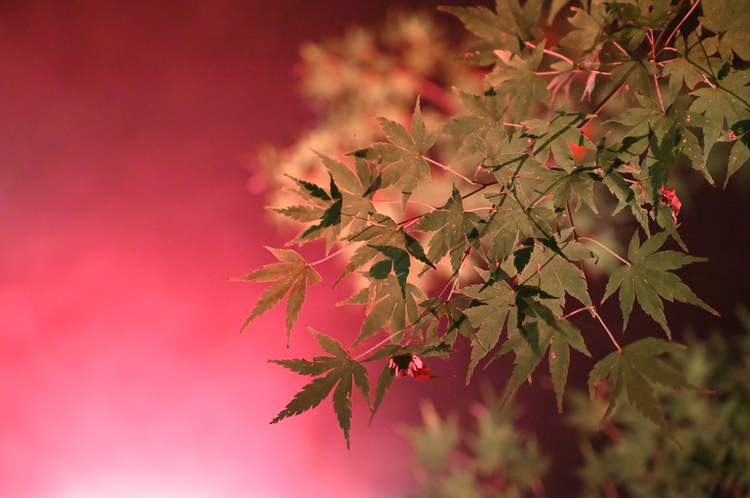 庭園はLEDのライトアップがされていましたが、かなり暗い状態でした。ISO感度は12800まであげて手持ちで撮影しています。本機は5.0段のボディ内手ブレ補正を搭載しており、Yaw、Pitch、Roll、上下、左右の5軸のブレを補正してくれます。この手ブレ補正のお陰で、三脚を使用しないで撮影できるシーンが増えました。