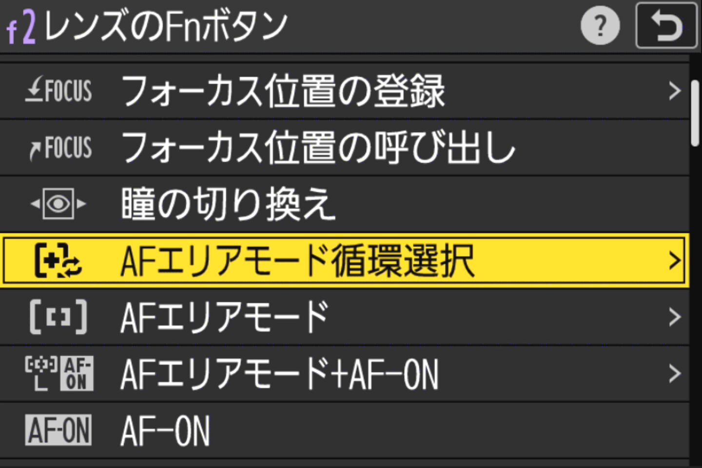 筆者はこれをL-FnとL-Fn2に割り当てており、カメラを構えて左手でレンズを支えた状態でL-FnまたはL-Fn2ボタンを押すことでAFエリアモードを素早く切り換えている。これまではカメラボディ左下のフォーカスモードボタンを押しながらサブコマンドダイヤルを回してAFエリアモードを変更するという、超望遠レンズで手持ち撮影する民にはかなりアクロバティックな操作を強いられてきたので、このカスタマイズはかなり便利である。
