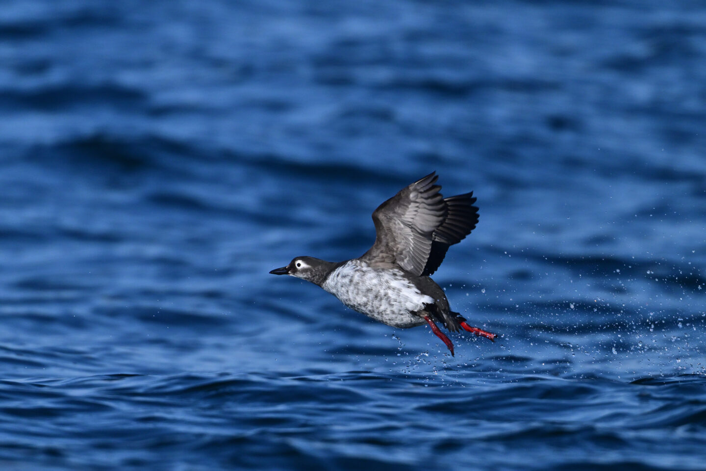 上の写真はNIKKOR Z 600mm f/6.3 VR Sに1.4倍テレコンを装着した上で、さらにDXクロップして1260mm相当で撮影した。ケイマフリの飛び立ちだが、揺れる漁船からの手持ち撮影でもこれだけの精度で撮影できる。