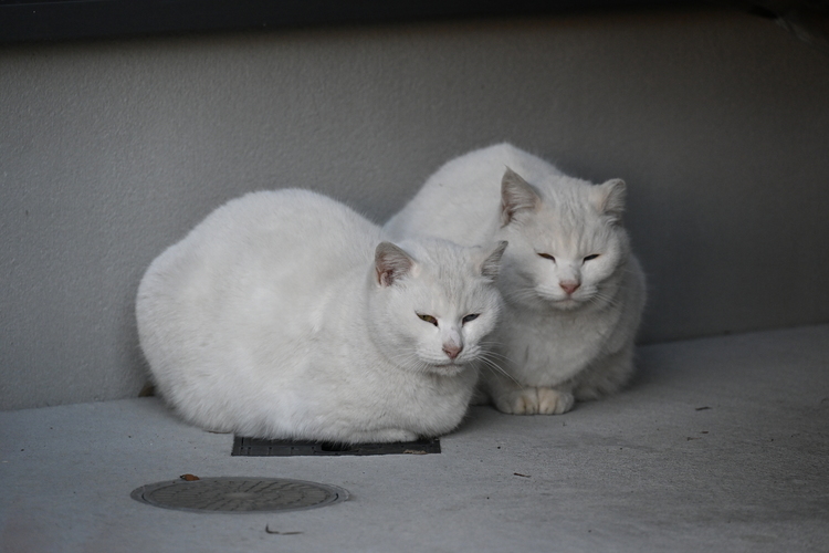 強い寒風の中、2匹のシロネコが身体を寄せ合ってうずくまっていました。そんなシーンも「Z 9」はしっかりとキャプチャーしてくれました。毛の質感と、寒々しい空気感が思った通りに撮影できましたよ。メカシャッターレスで静かなのでネコを驚かせることがありませんでした。