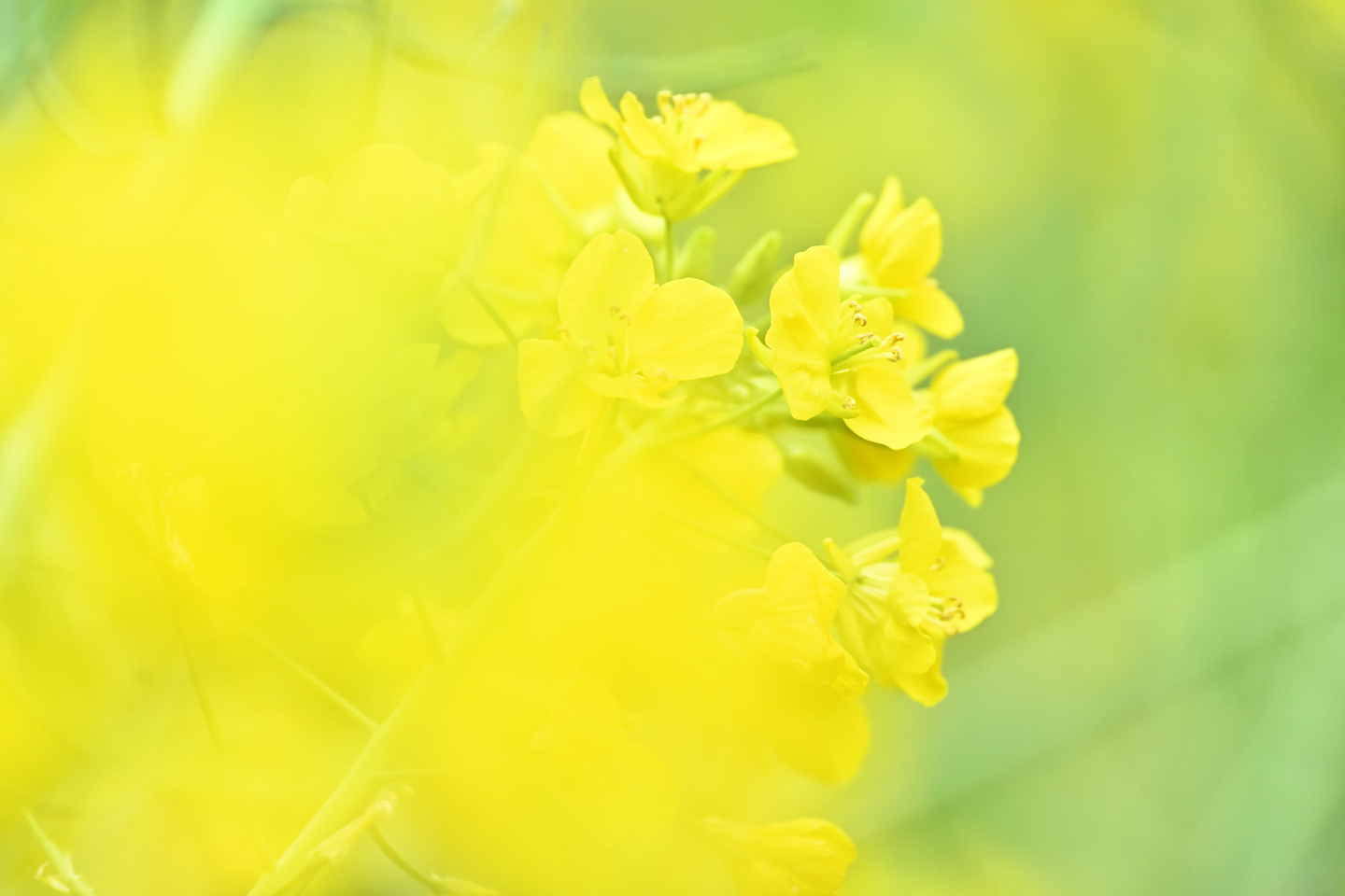 伊豆ではこの時期、菜の花も見ごろを迎えていました。所狭しと咲き誇る菜の花を、前ボケを大胆に入れて描いてみました。このレンズの特徴として、ボケの柔らかさがあります。絞り開放で、しっかりとグラデーションを描き切ったふんわりとしたボケは、前ボケを作り出すと、より一層その美しさがわかります。