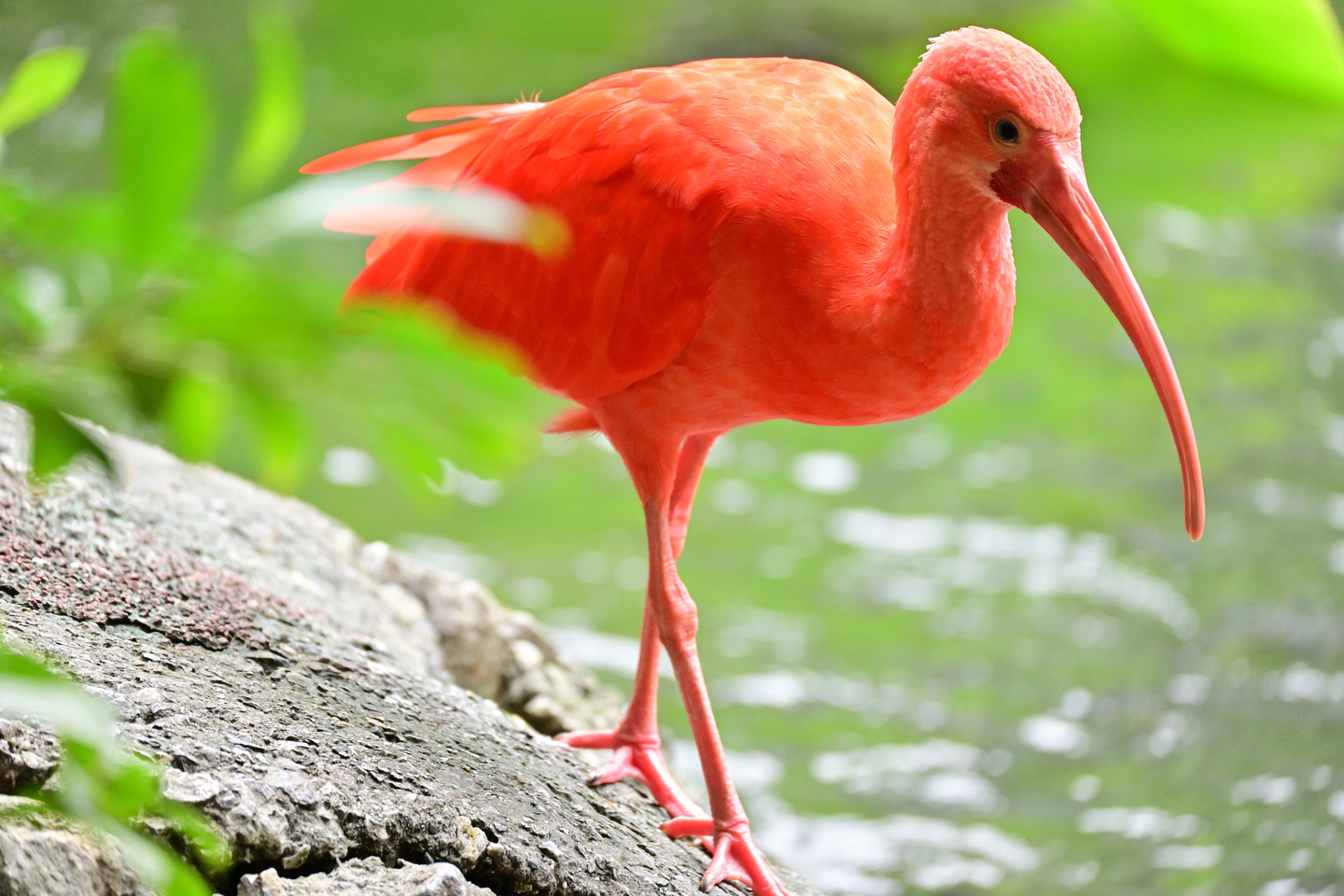 こちらは沖縄の鳥園で水辺の鳥を撮影したのですが、南国らしい黄緑色の葉を背景だけじゃなく手前にも入れたくて、ちょうどいい場所に鳥が歩いてきたタイミングでシャッターを押しました。そう思っても、そこに鳥が来ない可能性は高いし、来ても希望の向きではなく、すぐに飛び立ってしまうかも知れません。筆者は、こういうときは理想の構図を作ってから、ひたすら祈ります! 来るように念じます!