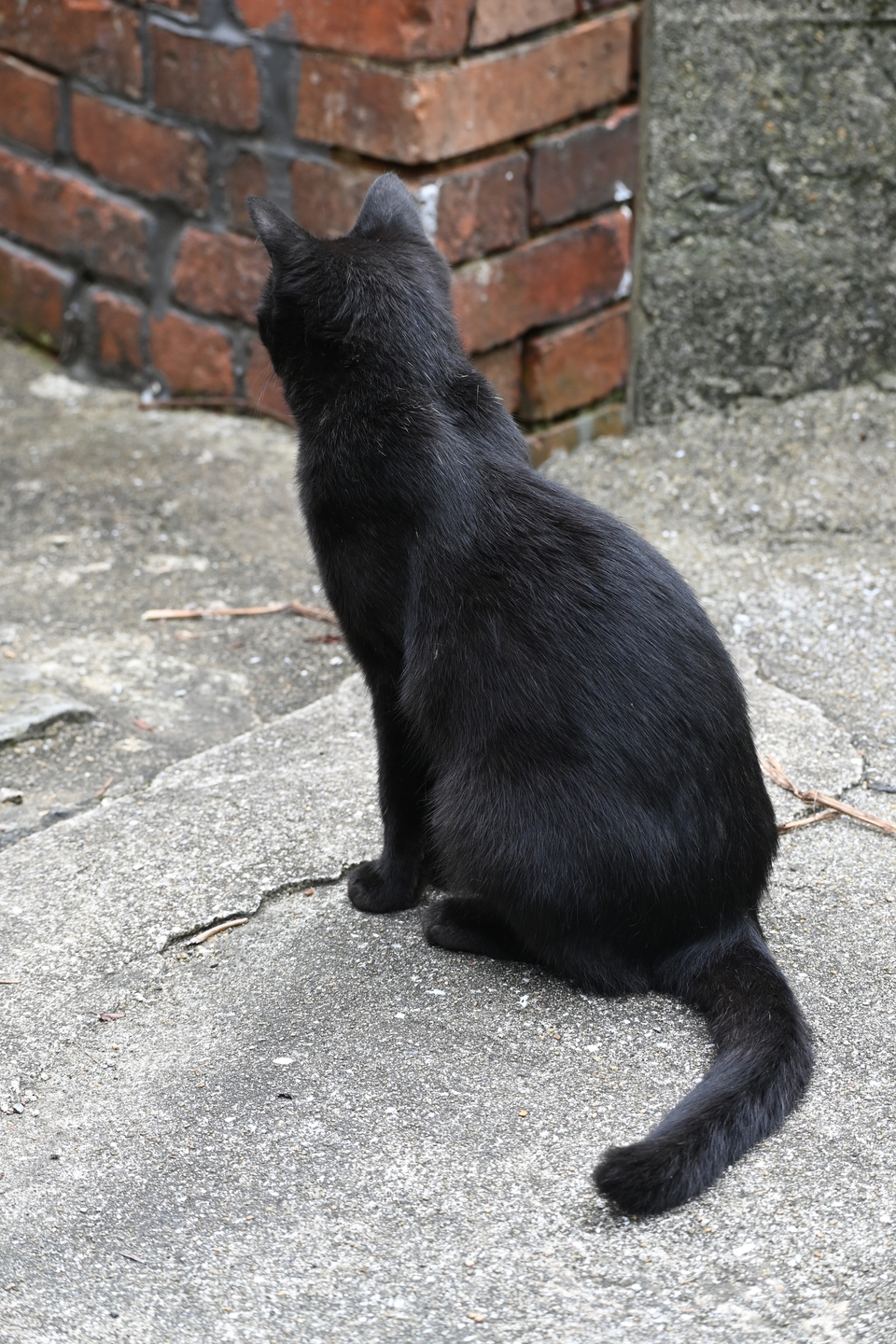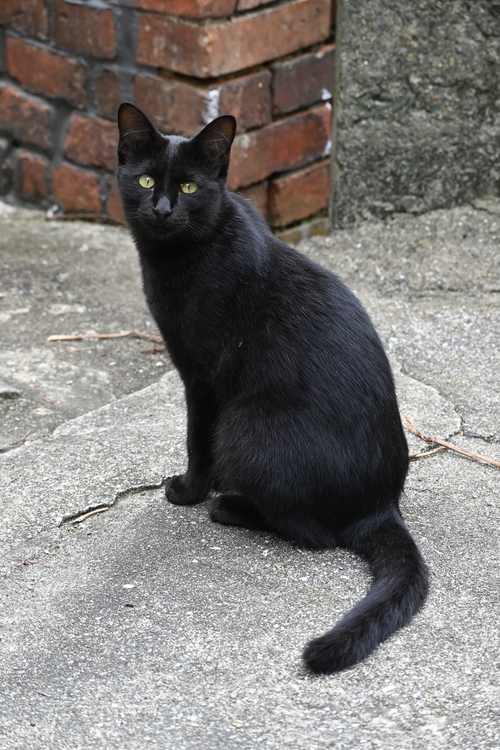 路地に佇む黒猫を発見。カメラはまず猫の体全体を捉えてピントを合わせていましたが……