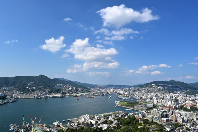 稲佐山へ上がるロープウェイより。夕刻のやわらかな陽射しに包まれる街の空気感をうまく捉えてくれました。