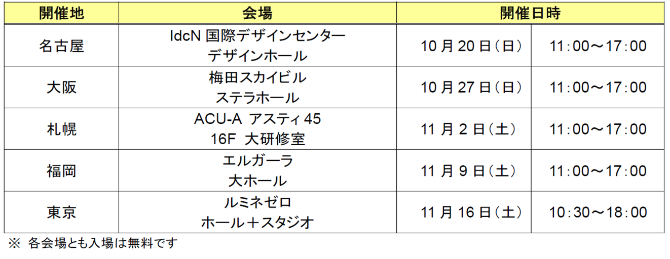 トークライブ、メンテナンス講座、プロギャラリー、技術展示、製品ハンズオンなど。