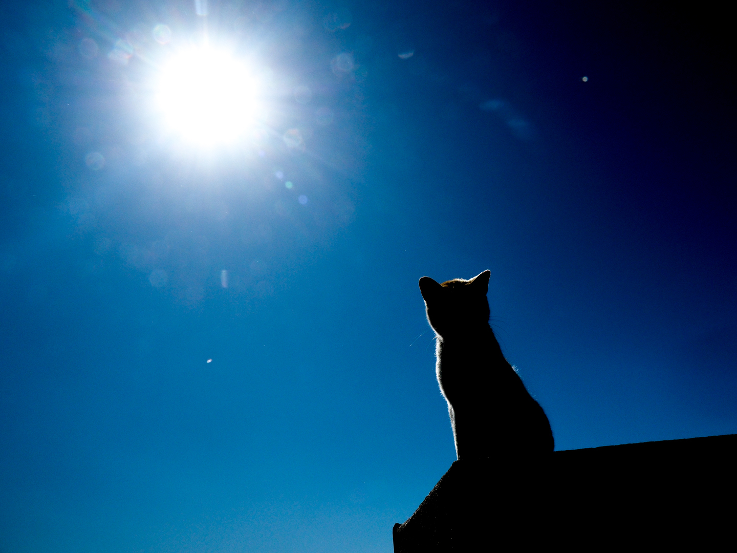 この作例は逆光でネコちゃんのシルエットを撮影しましたが、太陽の周りにゴーストが発生してしまいました。