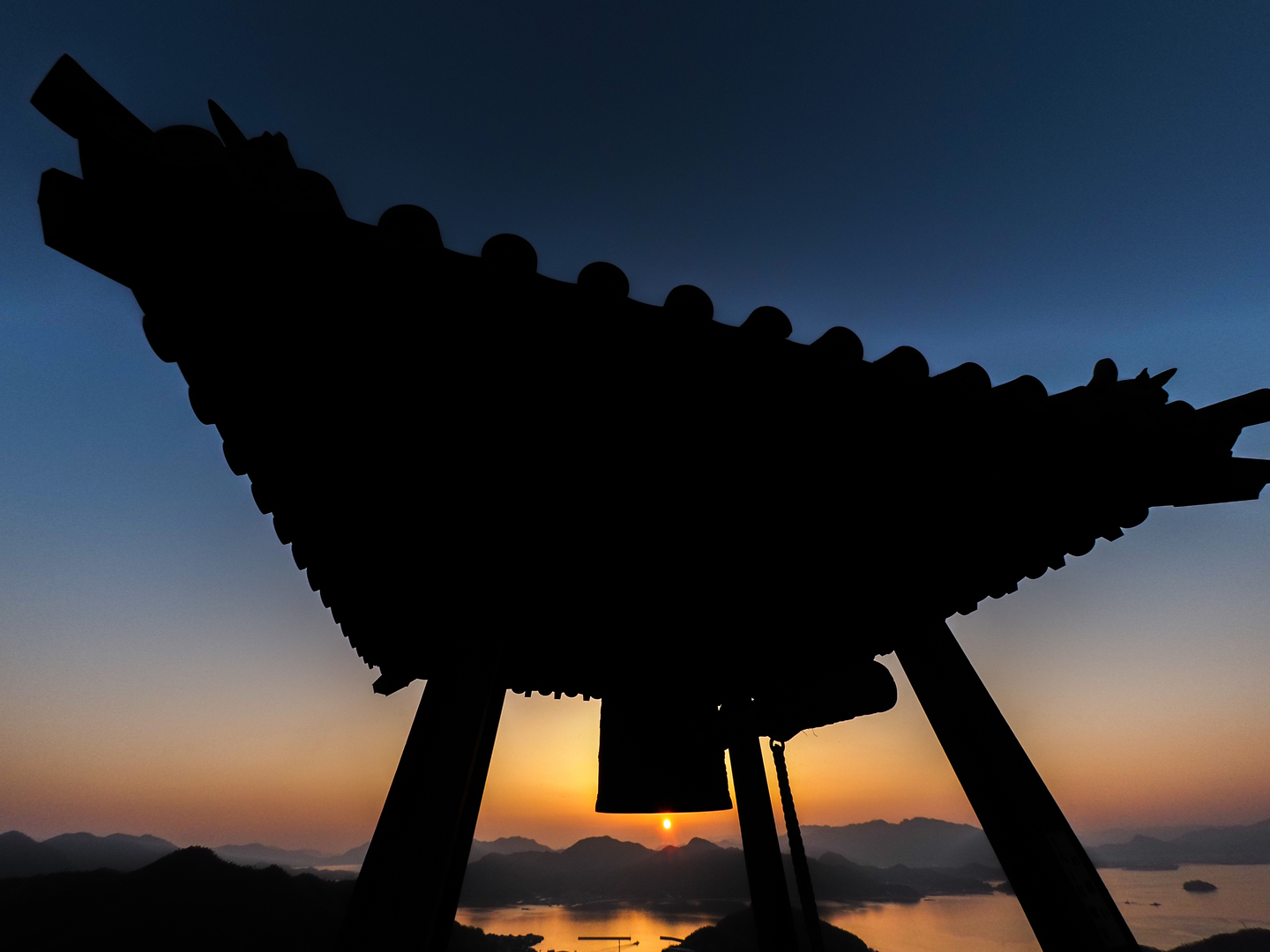 この被写体は広島県のしまなみ海道にある、因島の白滝山山頂に建てられている鐘撞堂です。夕暮れ時は鐘撞堂がシルエットとなりこれだけでも絵になりますが、動画のように人物を入れるとより影絵効果が高まることが感じられます。