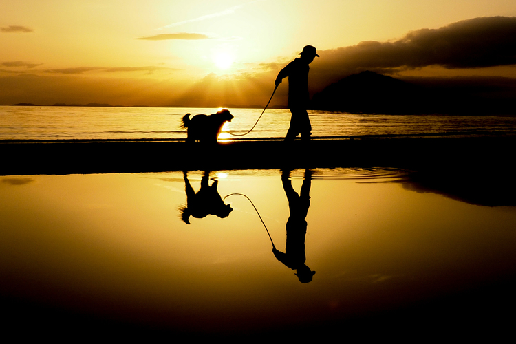 今や日本のウユニ塩湖と呼ばれる、香川県の父母ヶ浜での鏡面写真です。鏡面写真は被写体が水面に反射して、同じ被写体が下部にも写りこんで非常にフォトジェニックな写真が撮影できますが、この作品は同時に影絵の面白さも含まれていることがわかりますね。
