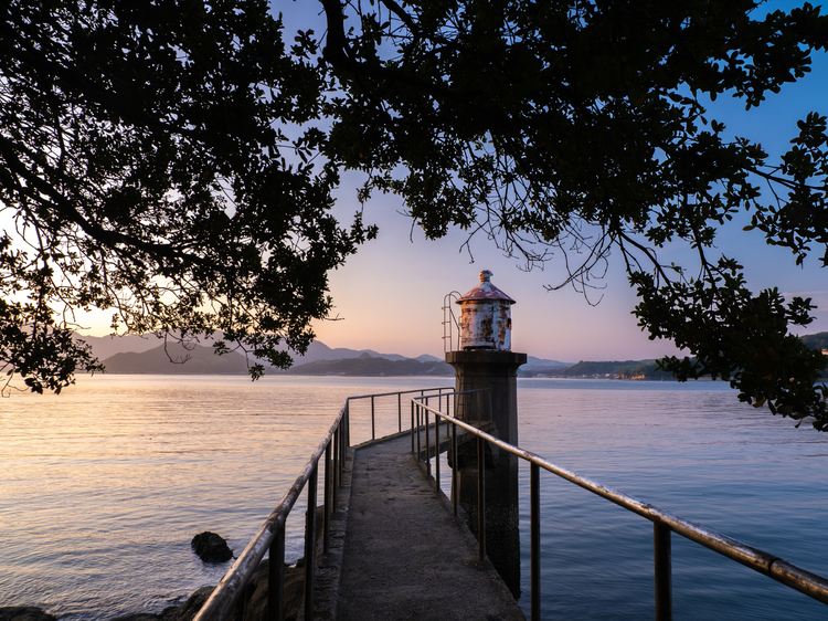 この写真は明治時代に造られた検潮台ですが、今ではまったく使用されていなくてぽつんと瀬戸内海に取り残されています。上部の空間に生い茂る木々を取り入れたことで物語性を出してみました。