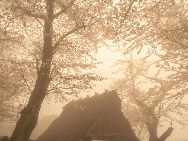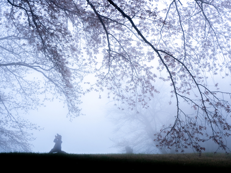 四国の紫雲出山は瀬戸内海に面しており、春の季節には満開の桜と同時に霧が良く発生します。天候が悪く瀬戸内海が望めないときも、霧と桜を利用してこのように人物を入れることでとても幻想的になりました。