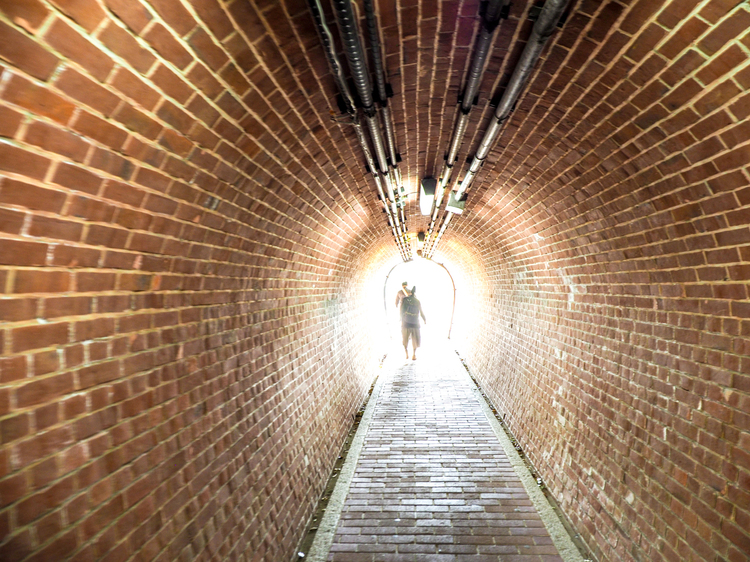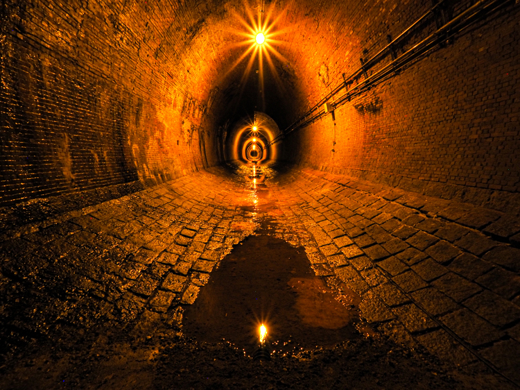 こちらは同じく兵庫県の湊川隧道。武庫離宮よりも古く、明治時代に造られた日本初の河川トンネルだそうです。現在は使用されておらず、産業遺産としてひっそりと時を刻み続けています。今回は水たまりをアクセントにして撮影しましたが、人物を入れなくてもとても幻想的ですね。中に入れる日は決まっていますのでHPで事前確認を。