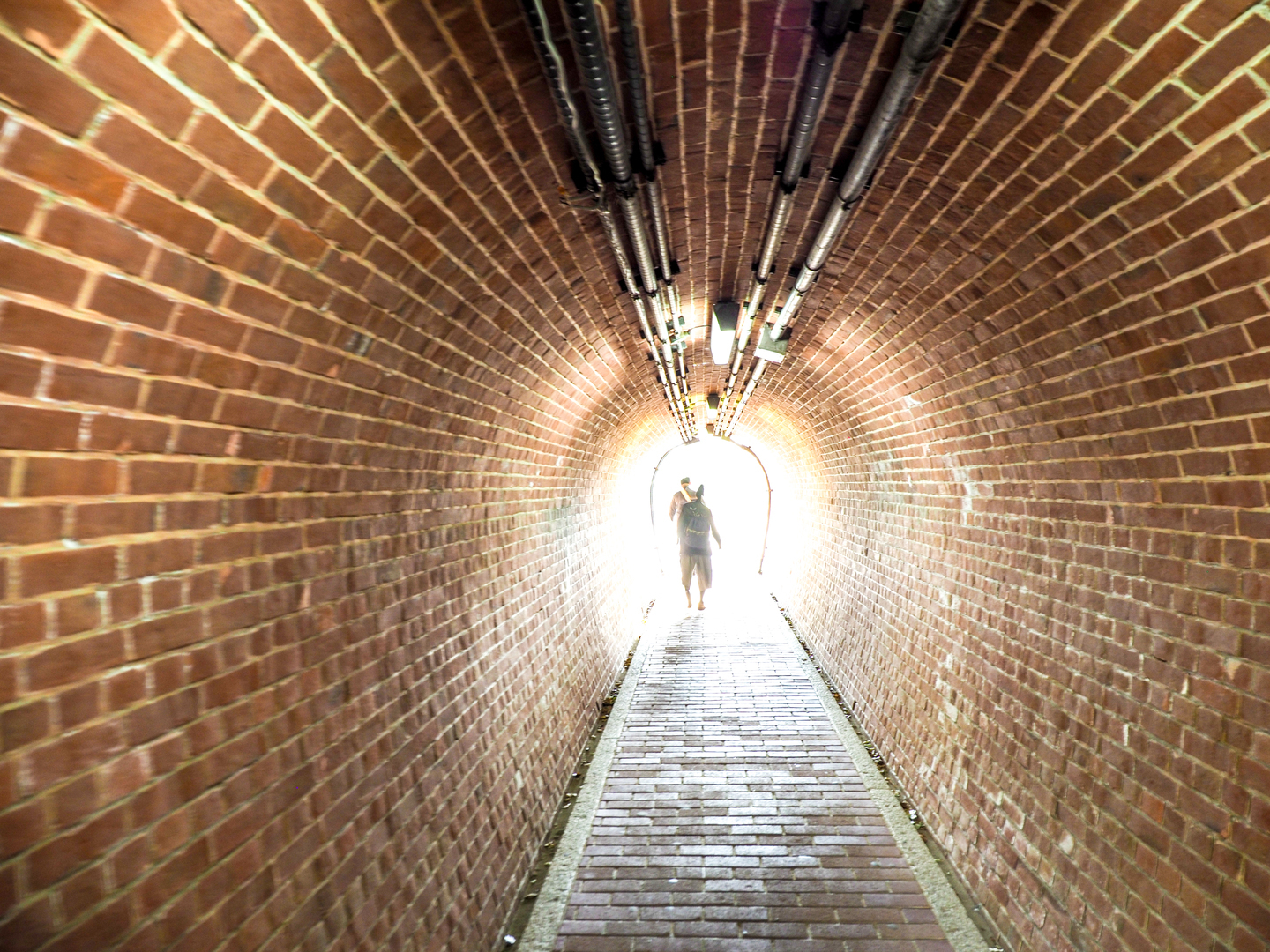 こちらは兵庫県の須磨離宮公園内にある古いトンネルです。皇室の別荘「武庫離宮」時(大正三年)に造られたもので、奇麗に敷き詰められたレンガがいい雰囲気を醸しています。向こうから知り合いが来たので逆光で……