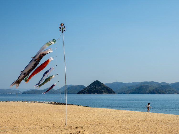 私の地元・岡山県の渋川海水浴場での一枚。コロナ禍で閑散とした近所の浜辺に鯉のぼりがとても映えました。遠くで一人寂しく遊んでいた子供を入れて撮影、空間に小さく子供を配置することで物語性がより強調できました。
