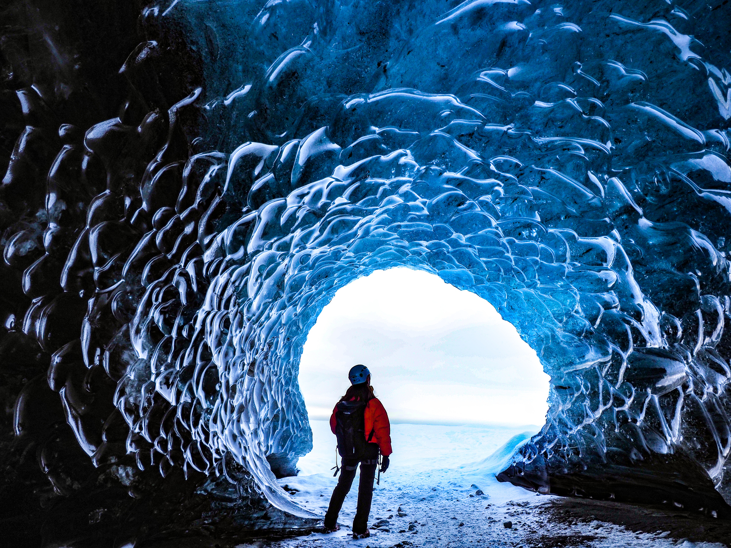 こちらはアイスランドの氷河の洞窟です。想像を超える氷の壁ですね。氷のトンネルのみでも絵になりますが、ご一緒した方に立ってもらいました。また、いつか外国に行くことがあれば撮影したい場所の一つです。