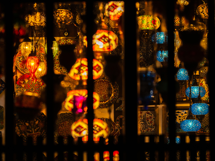 この写真は私の近所の倉敷美観地区内での作品です。美観地区は近年、さまざまな土産物店が進出しており、夜はそのお店の雑貨などを照明している灯りが奇麗で絵になります。この写真は夜、人気のない中、散歩がてら撮影したものです。まるでベトナムのホイアンで撮影したかのような幻想的な写真が撮れました。