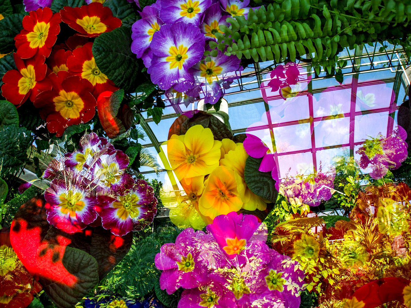 こちらは植物園での撮影ですが、多重露出機能が付いたカメラならばこのようなファンタジックな作品ができます。天井の窓をアクセントに周りの空間に沢山の花をちりばめました。この際のアドバイスとしては、2枚目の花写真の重ね具合をうまく調整することです。