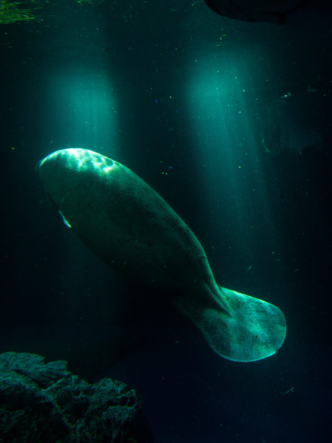 ちなみにこちらがマナティです。もちろんマナティの水槽もあり、寂し気な感じを強調したかったので上部からの光が当たる瞬間を撮影しました。