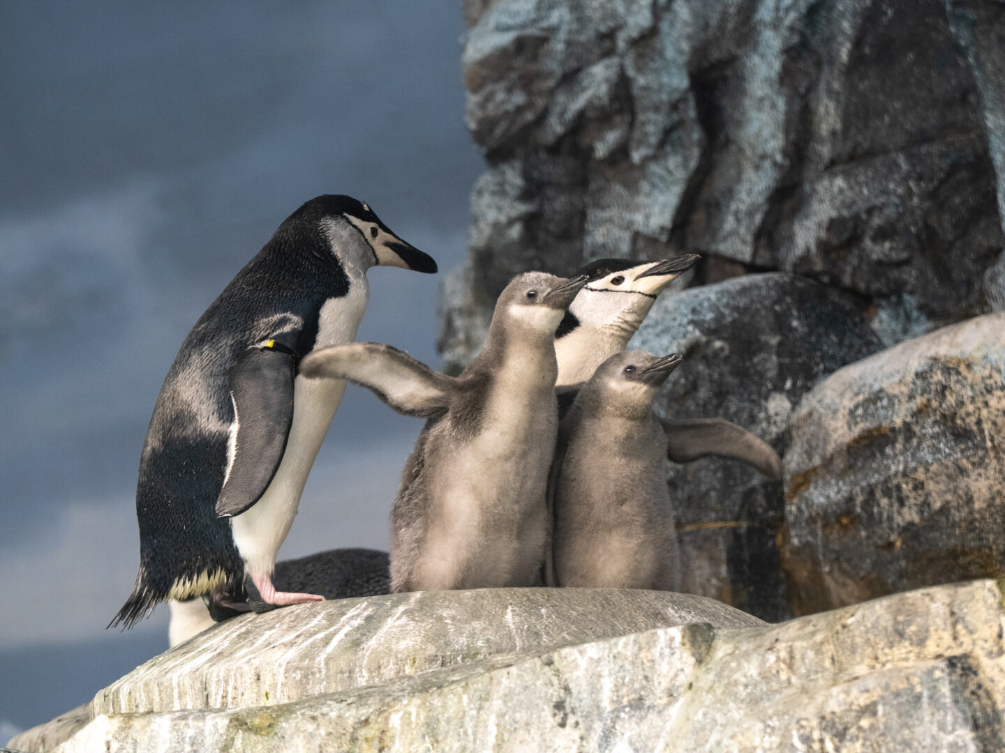 訪れた日はちょうどヒゲペンギンの赤ちゃんが生まれていたので、良い表情の瞬間を望遠レンズで撮影しました。