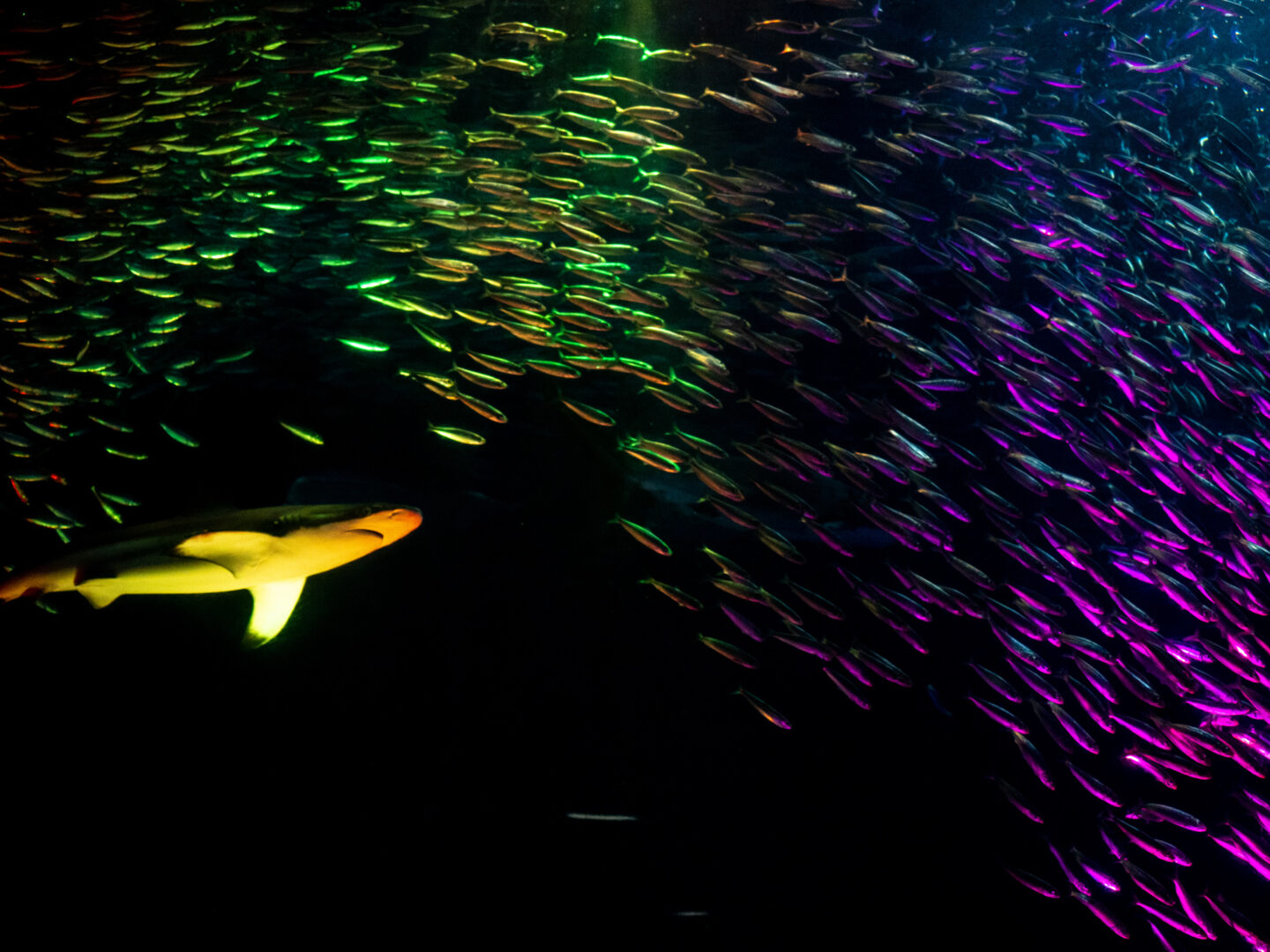 他にも蛍光サンゴなど盛りだくさんの展示でしたが、楽しみにしていたシャチのイベントは中央から見えにくい奥のプールで行われていたため、全然写真が撮れませんでした。シャチのイベントは事前にインフォメーションで聞いてどこで行われるか聞いた方が良いですね。