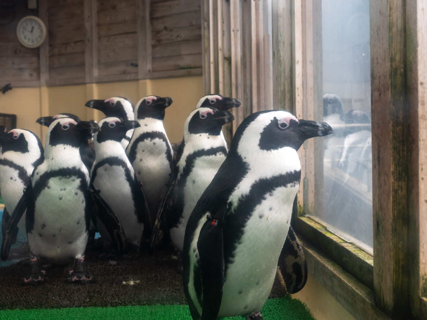 生憎天候が悪かったので、屋外に展示していたケープペンギンさん達は小屋で出番をひたすら待っているようでした。
