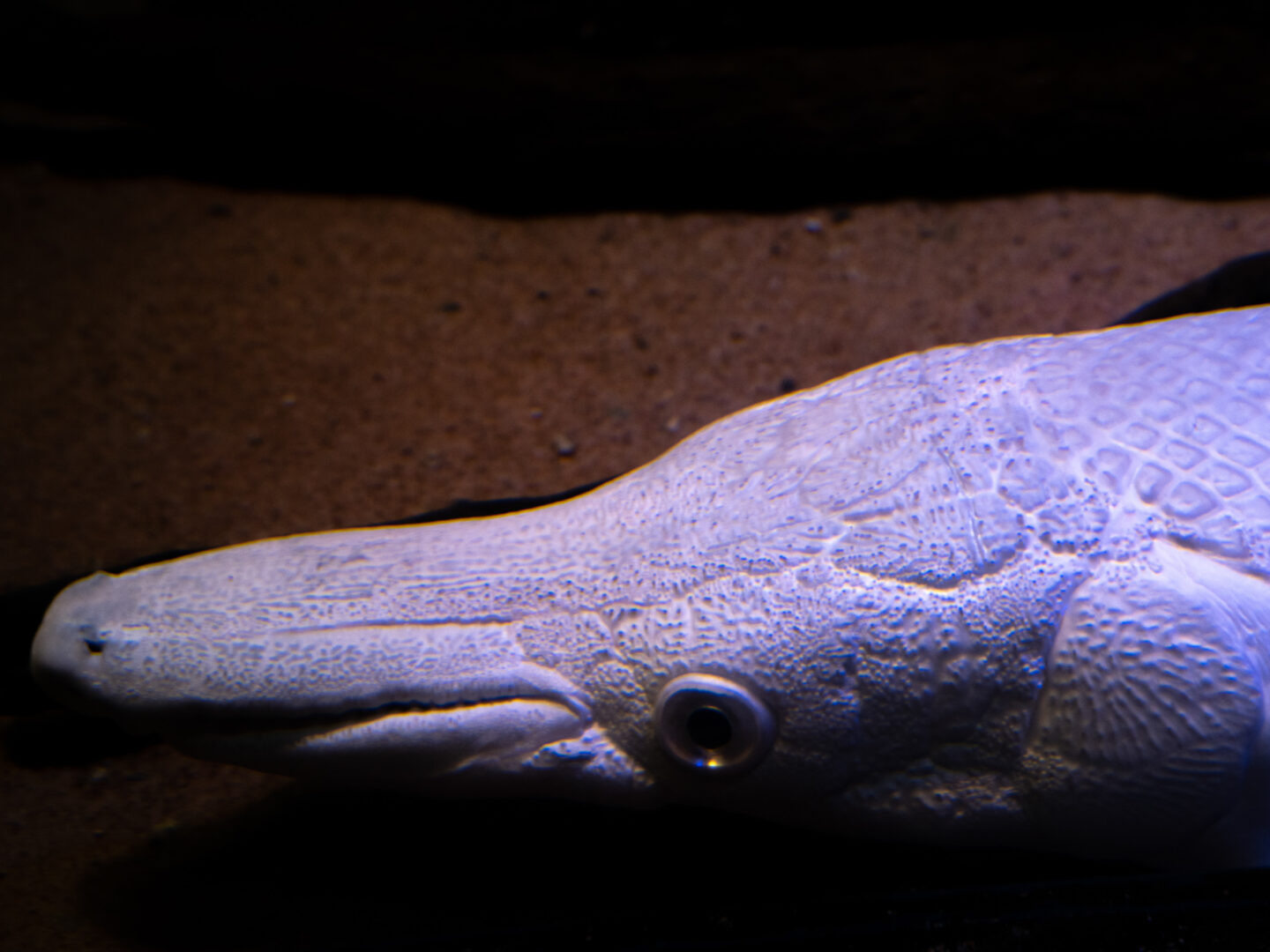 入館するとまずはとても珍しいアルビノ種のアリゲーターガーが!凄いインパクトです。
