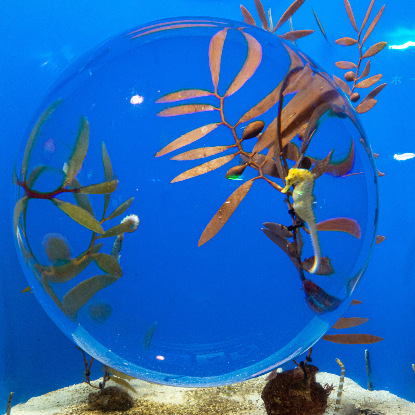 内部はとても幻想的な空間もあり、魚だけでなくこのようなアート的な写真も撮影できます。