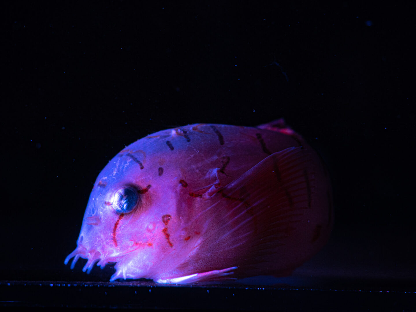 この水族館は背景に様々な色のスポットライトを多用しているので、いろいろなボケ具合を楽しめます。