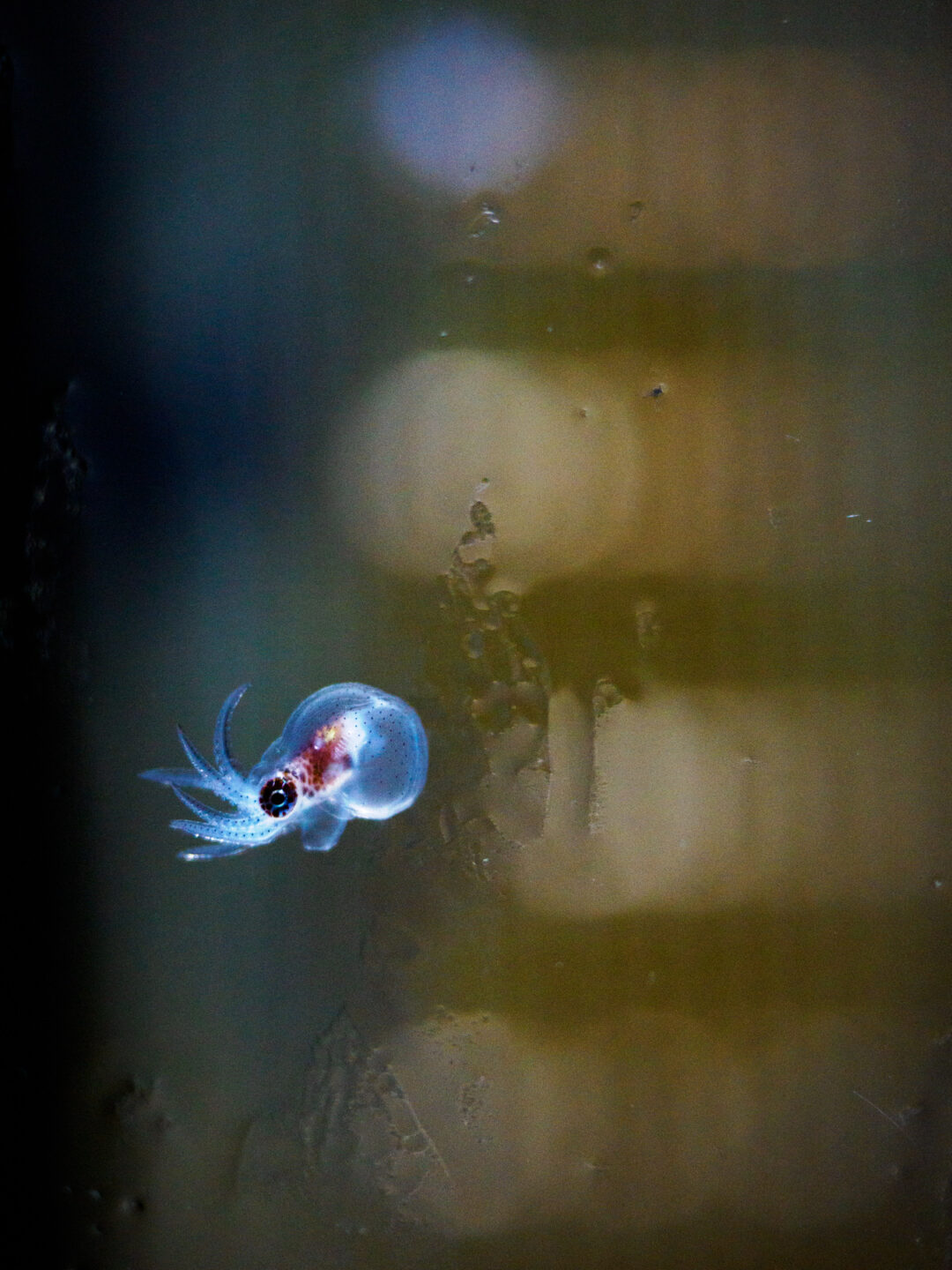 水蛸の赤ちゃんが生まれたそうなので撮影しました。接写対応のレンズだと極小の水蛸にもこのように寄れるし、背景もかなりボケるので絵になります。こちらも動画を撮影したのでご参考に。