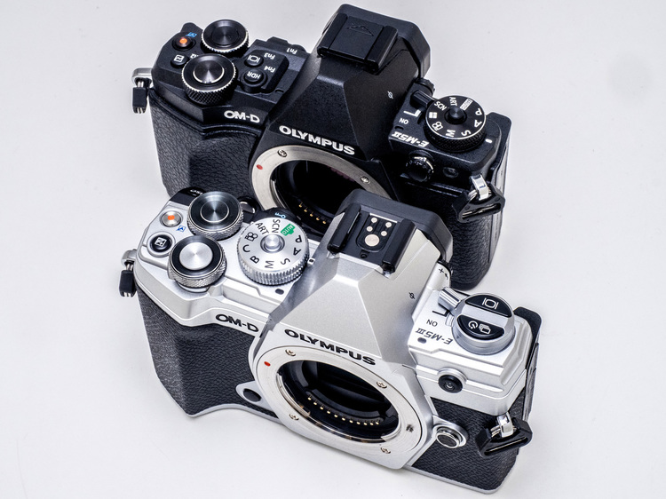 これら二機種の違いは本格的なプロ仕様であるE-M1 MarkIIと、伝統的でスタイリッシュな小型ボディのままで最新のデジタル一眼として性能を向上させたE-M5 MarkIIIという方向性の違いである。金属外装だったE-M5 MarkIIから外装を樹脂製に変更したことによりE-M5 MarkIIIの方が55gほど軽くなっている点も機動性を重視した結果だろう。